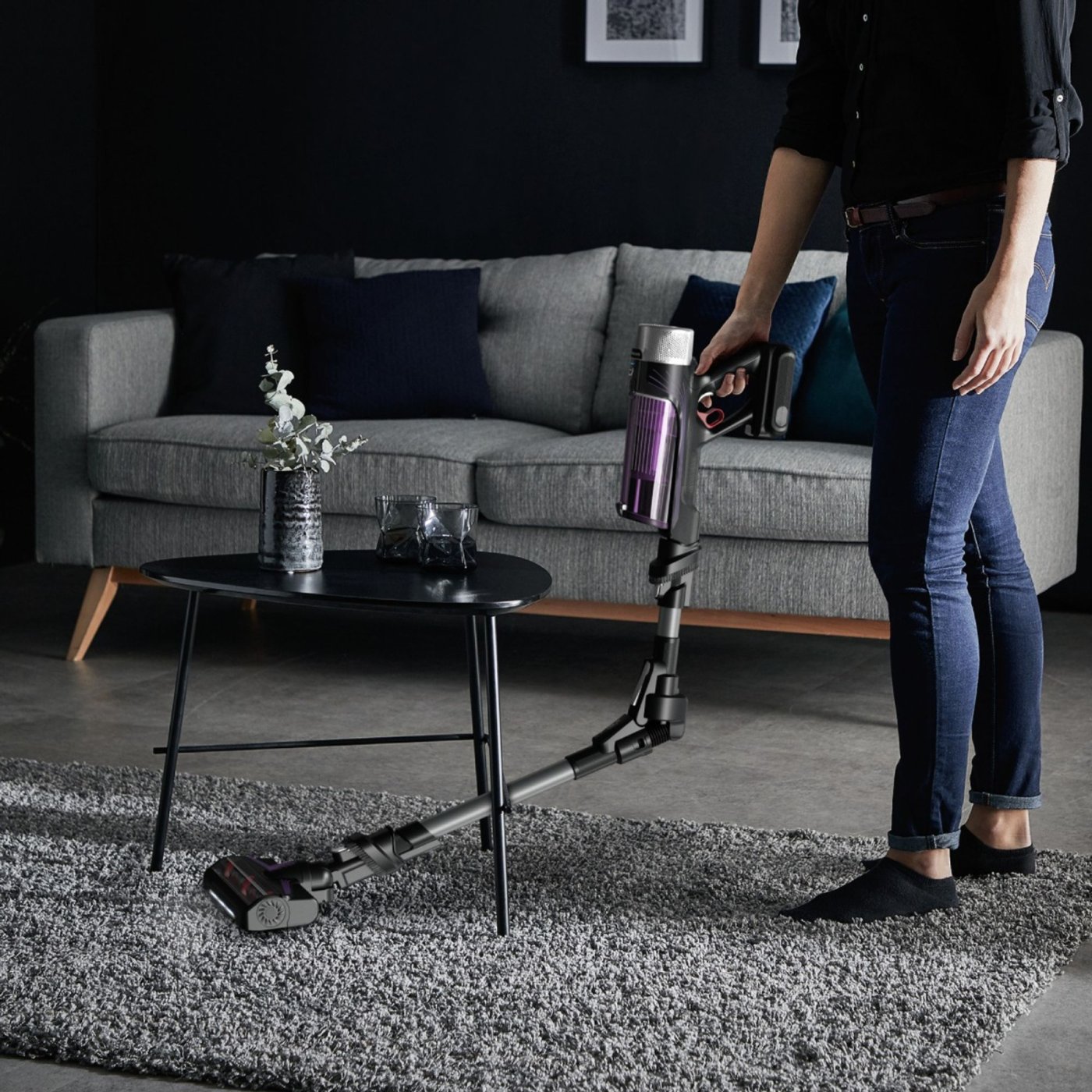 Descopera aspiratorul vertical fara fir Rowenta X-Force Flex 9.60 Allergy RH2038WO — solutia ideala pentru o curatenie eficienta si confortabila in intreaga locuinta. Cu o putere de aspirare constanta de pana la 100 Air Watts, acest aspirator ofera performante ridicate pe multiple suprafete, de la podele dure la covoare. Designul ultra-usor si ergonomic, in combinatie cu tehnologia tubului Flex, iti permite sa cureti fara efort sub mobilier fara sa te apleci. Sistemul avansat de filtrare retine pana la 99,9% din praful fin, alergenii si acarienii, fiind ideal pentru case cu persoane sensibile la alergii. Ecranul inteligent Smart Control afiseaza autonomia bateriei si necesitatea intretinerii filtrului in timp real, iar bateria ofera pana la 45 de minute de functionare pentru sesiuni extinse de curatenie.