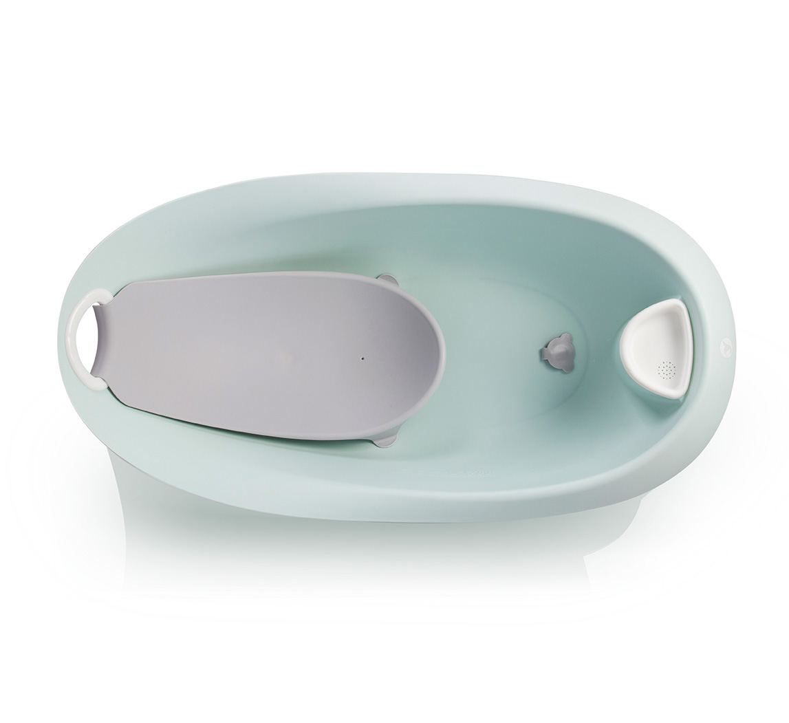 Siguranța și Ergonomie: Insertia in forma de galeata previne alunecarea si menține bebelusul intr-o poziție optima; include un indicator de nivel maxim al apei pentru siguranta sporita.
