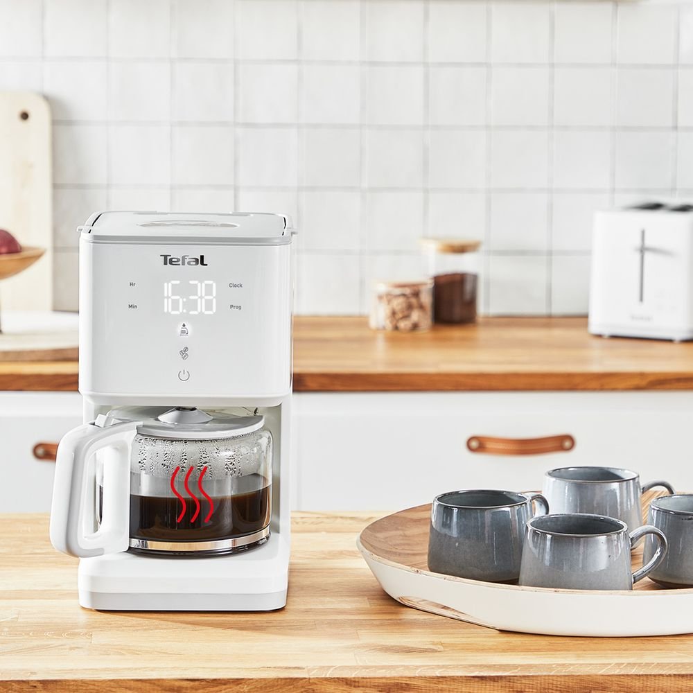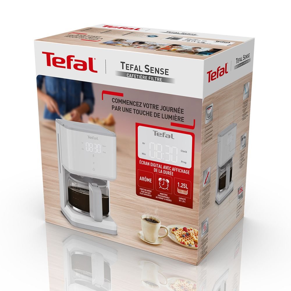 Bucura-te de o experienta desavarsita a cafelei in fiecare dimineata cu cafetiera Tefal Sense CM693110. Acest aparat combina un design modern si minimalist, de un alb impecabil, cu tehnologii avansate pentru a extrage maximum de aroma din cafeaua ta preferata. Elementul central este ecranul digital intuitiv care permite programarea procesului de preparare cu pana la 24 de ore in avans, astfel incat aroma cafelei proaspete sa te intampine imediat ce te trezesti.