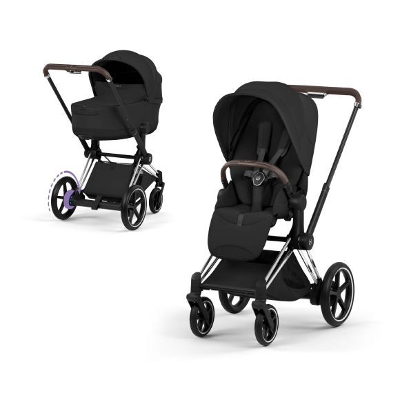 Carucior 2 in 1 pentru copii Cybex E-Priam Style, premium, Sepia Black cu cadru Chrome