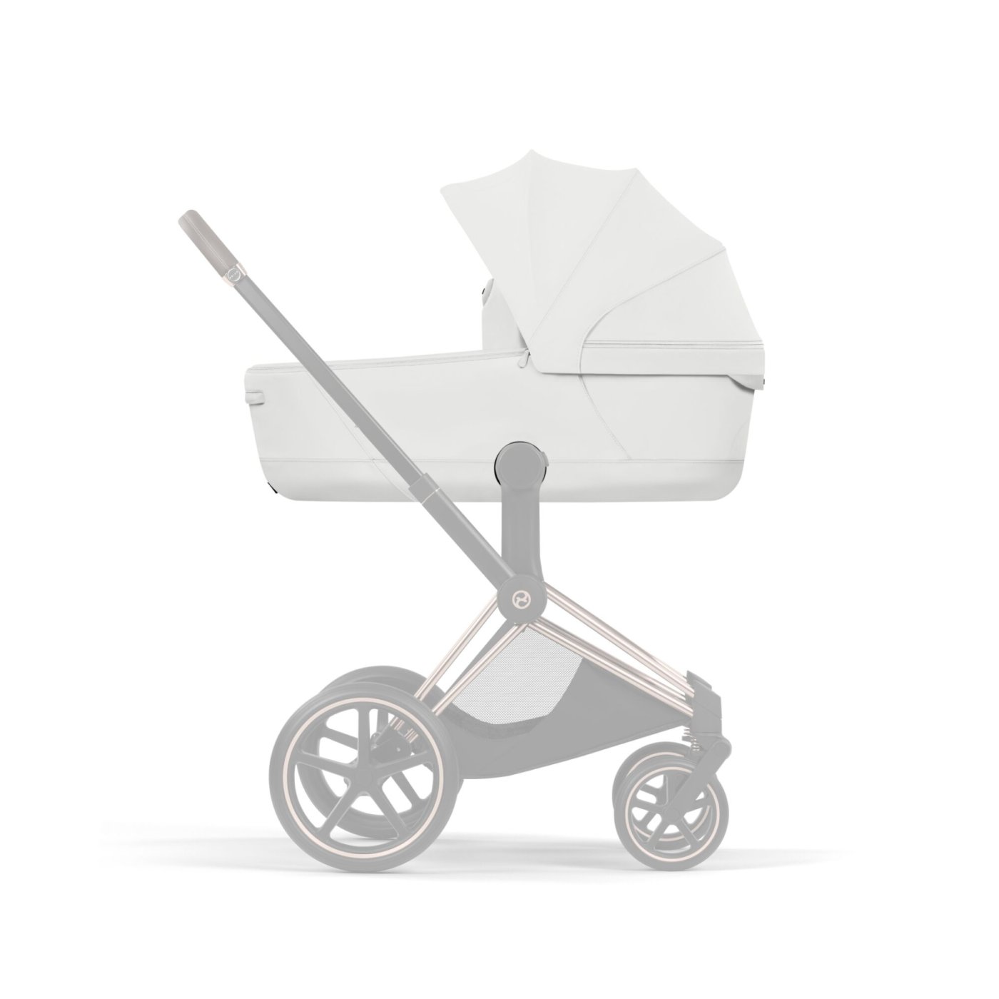 Carucior 3 in 1 pentru copii Cybex Priam Style, cu landou si scoica Cloud T Plus, Off White cu cadru Rosegold