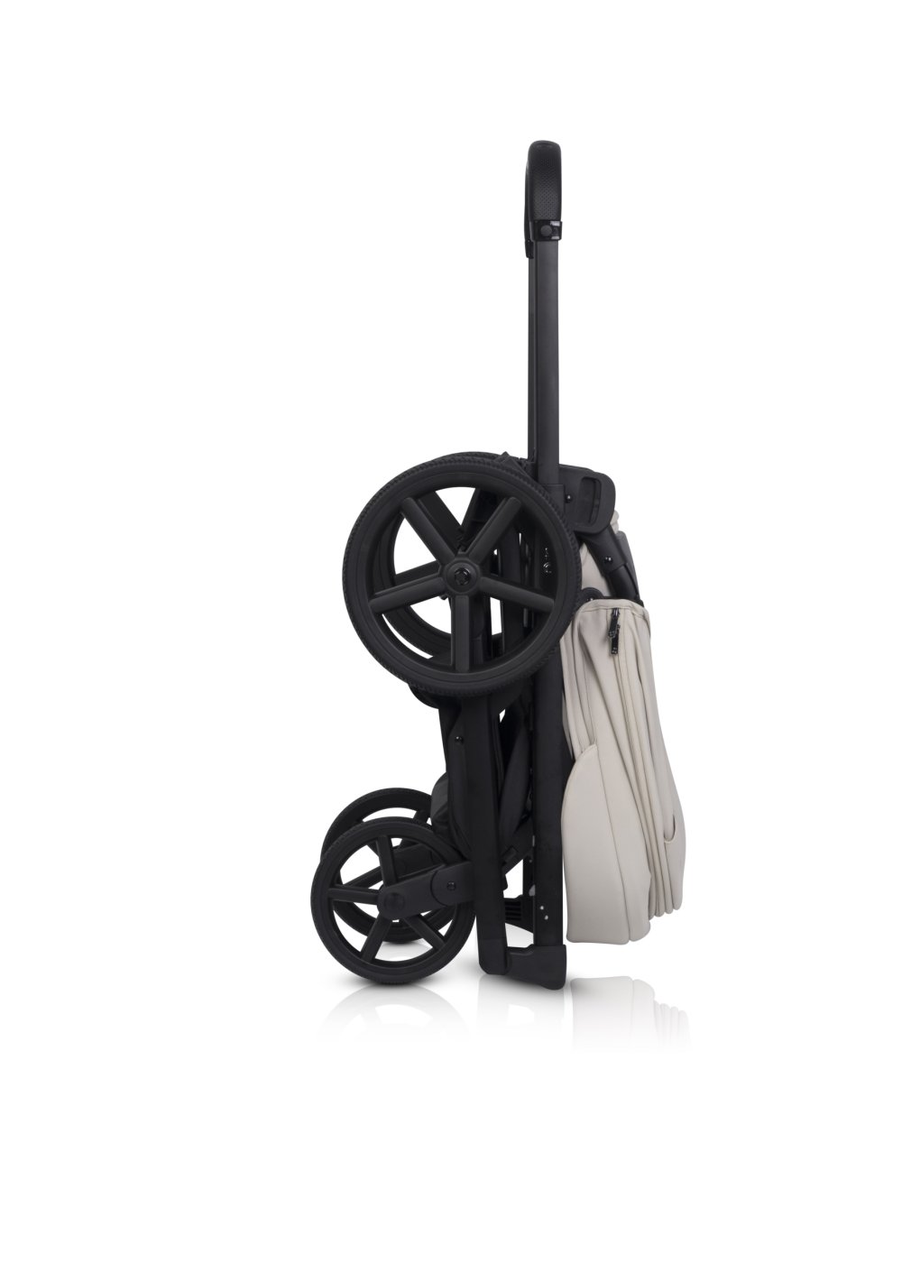 Sistem telescopic de pliere - Caruciorul se pliaza compact cu o singura mana, cu scaunul montat in orice directie. Dupa pliere, acesta sta pe toate cele patru roti, fara ca materialele sa atinga solul si poate fi transportat ca un troler, datorita manerului telescopic extensibil.