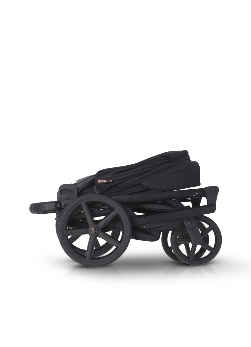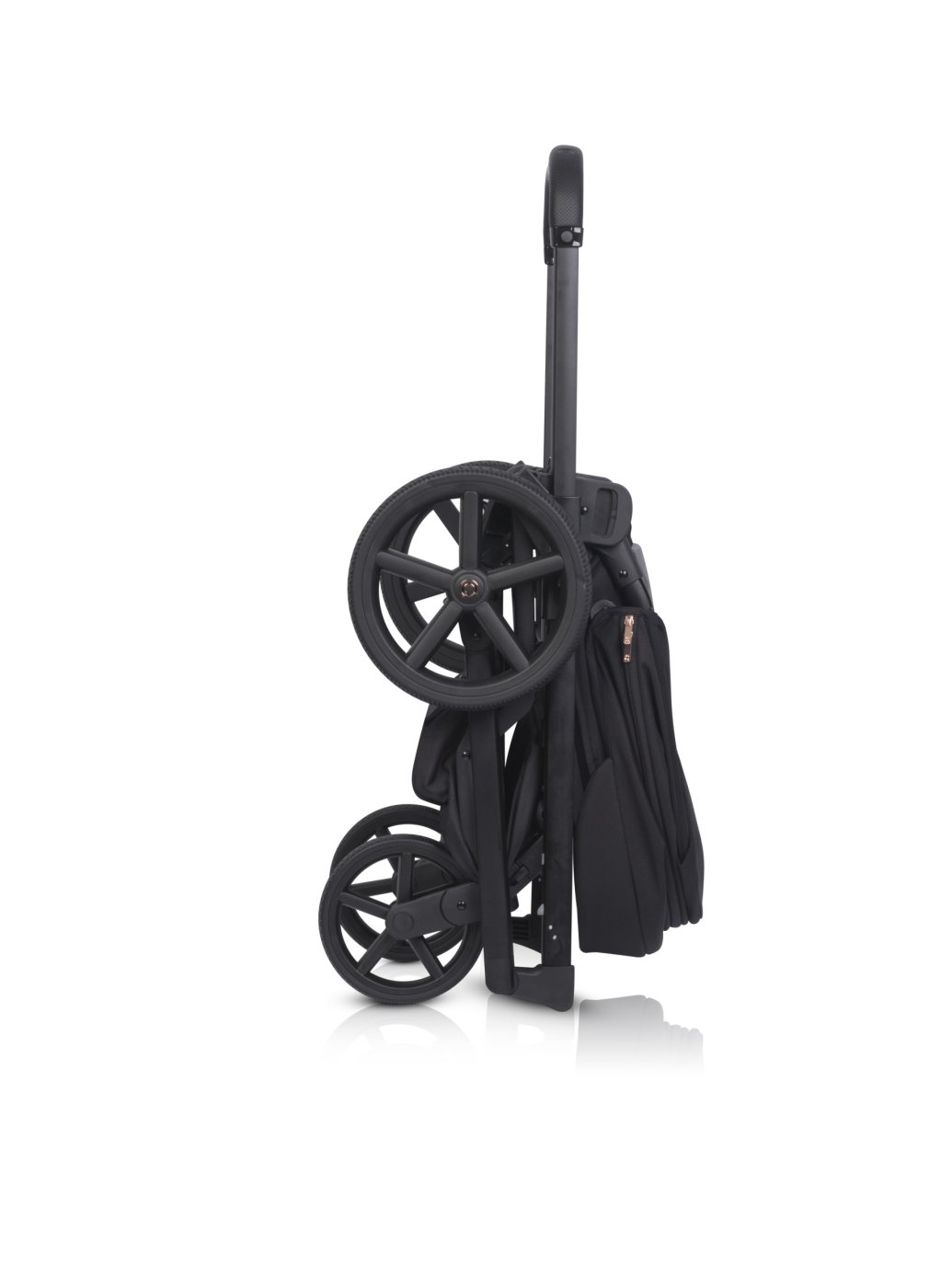 Sistem telescopic de pliere - Caruciorul se pliaza compact cu o singura mana, cu scaunul montat in orice directie. Dupa pliere, acesta sta pe toate cele patru roti, fara ca materialele sa atinga solul si poate fi transportat ca un troler, datorita manerului telescopic extensibil.