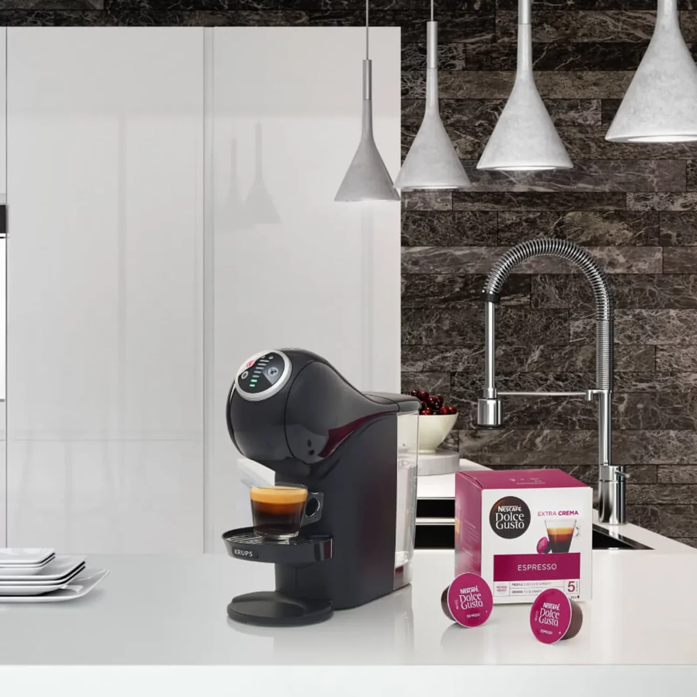 Espressor capsule Krups NESCAFÉ Dolce Gusto Genio S Plus KP340810,15 bari, XL, rezervor 0.8 L, 1500 WIntensitate si temperatura ajustabila;Peste 30 de retete de bauturi calde si reci;Pompa de inalta presiune de 15 bari;Functie Hot & Cold, XL, Espresso Boost;Mod ECO.Bucura-te de cafea exact asa cum iti place cu espressorul automat NESCAFÉ Dolce Gusto Genio S Plus. Compact, modern si intuitiv, ...