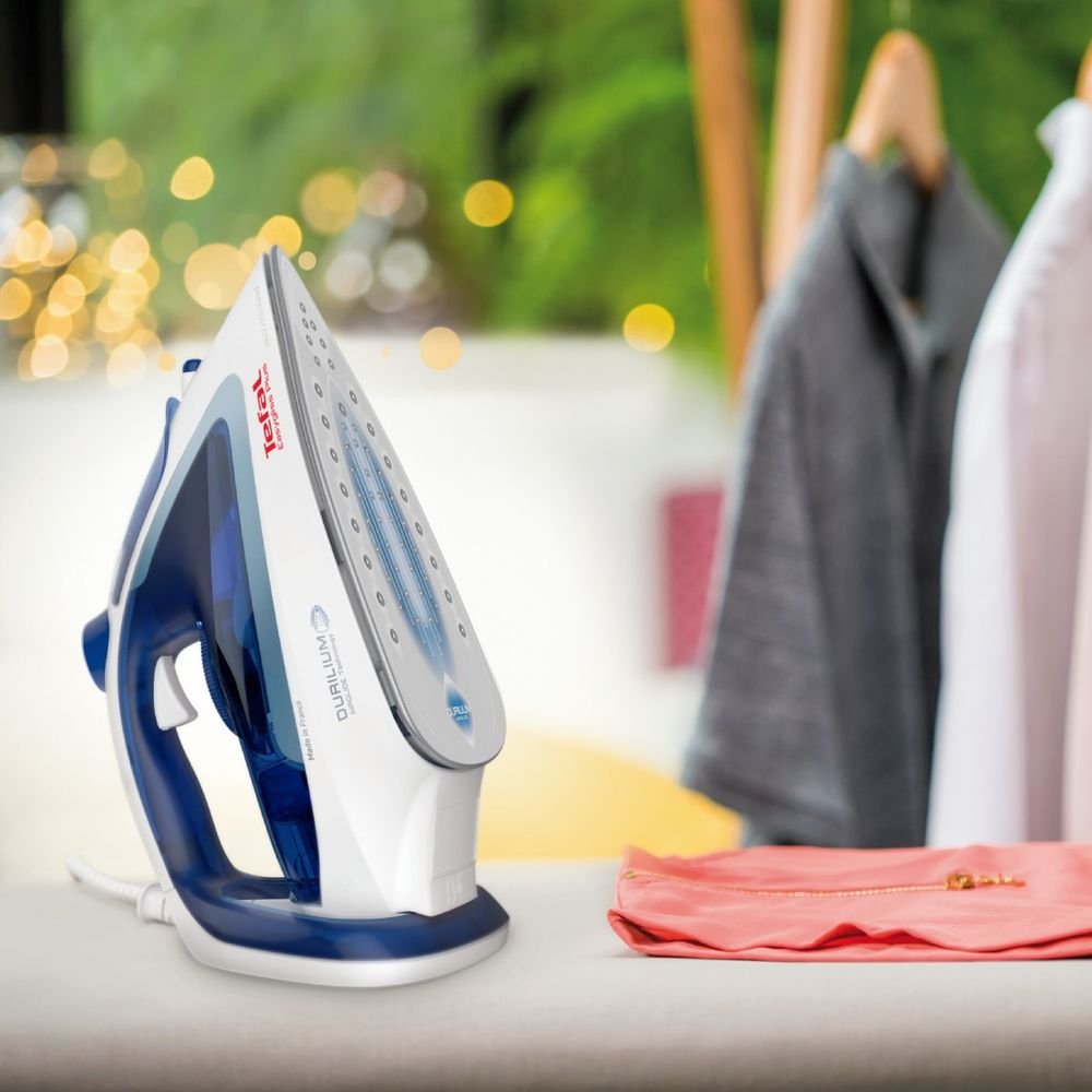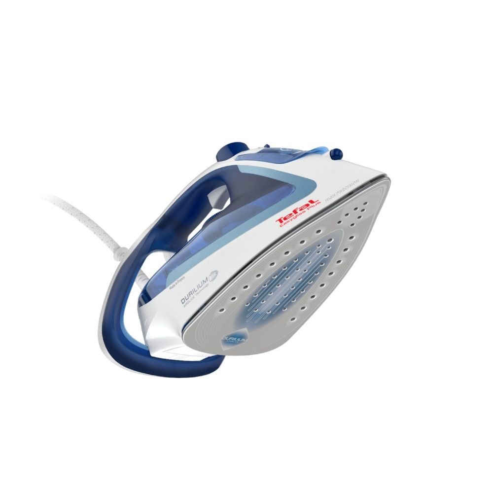 Fier de calcat Tefal Easygliss Plus FV5715E0, 2400W, Talpa Durilium Airglide, Sistem Anti-picurare, Alb/Albastru