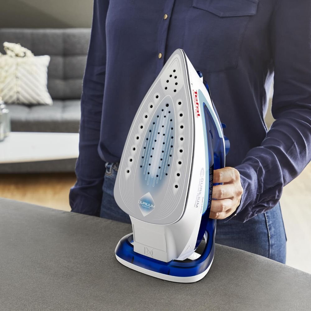 Fier de calcat Tefal Easygliss Plus FV5715E0, 2400W, Talpa Durilium Airglide, Sistem Anti-picurare, Alb/Albastru