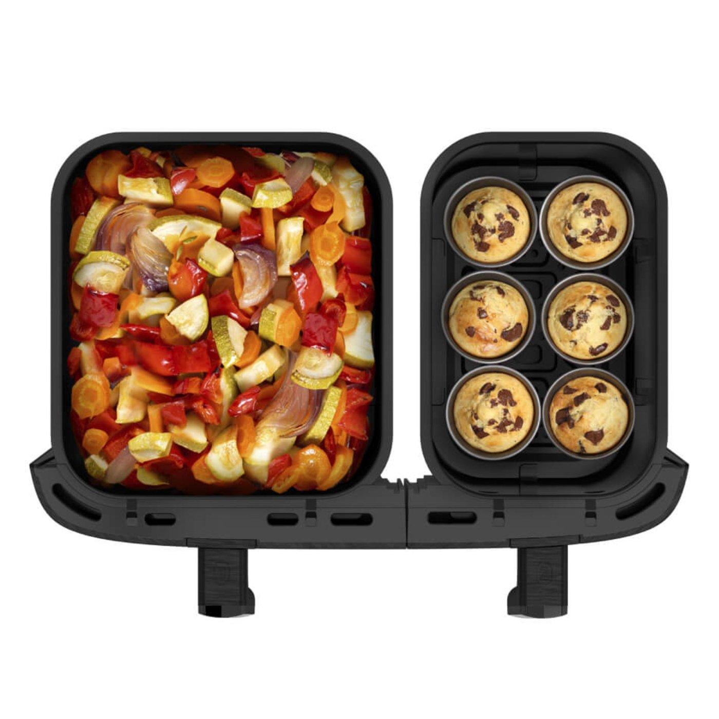 Cu o capacitate totala de 11 litri, acest air fryer este perfect pentru 8–10 persoane. Cuva mare de 6,5 L permite gatirea ingredientelor voluminoase, precum fripturi de pana la 2 kg, in timp ce sertarul de 4,5 L este ideal pentru cartofi prajiti crocanti sau aperitive delicioase.
