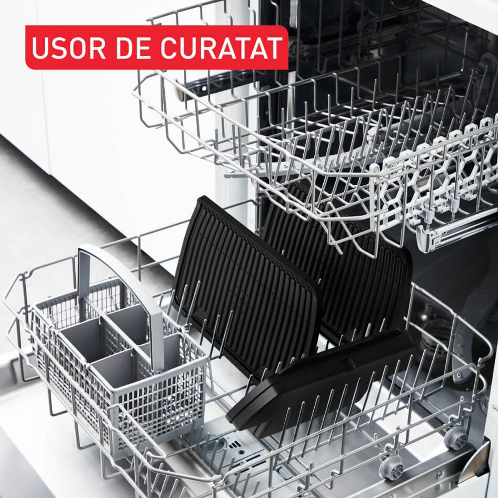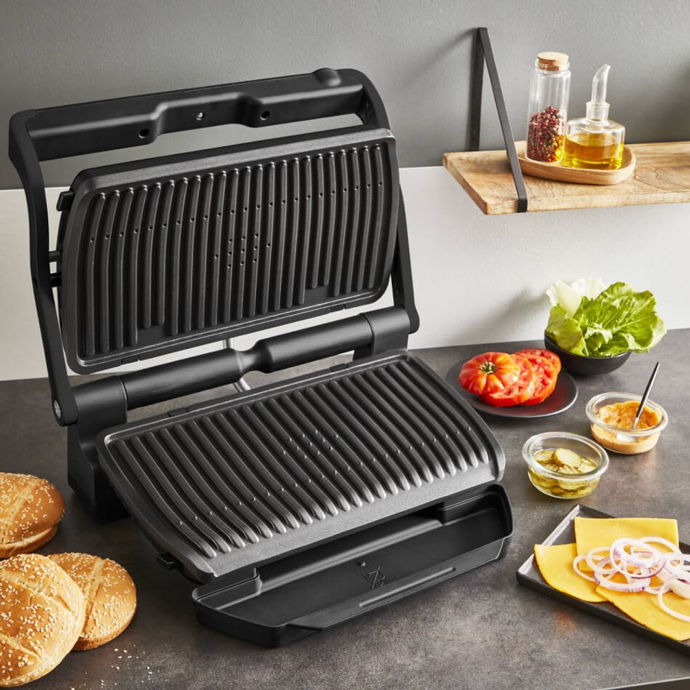 Gratarul electric Tefal OptiGrill+ XL GC727810 este solutia perfecta pentru gatit gustos si sanatos acasa, oferind 9 programe automate de gatire ce ajusteaza automat timpul si temperatura in functie de grosimea si numarul ingredientelor pentru rezultate excelente de fiecare data. Tehnologia inteligenta detecteaza grosimea alimentelor si adapteaza ciclul de gatire, iar indicatorul pentru nivelul de gatire te ghidaza vizual de la putin facut la bine facut, fara a fi nevoie sa monitorizezi constant gratarul. Plăcile detasabile cu invelis antiaderent si tavita de colectare a grasimii fac curatarea usoara, iar suprafata de gatit XL este perfecta pentru preparate pentru intreaga familie sau grupuri de prieteni. Datorita constructiei robuste si dimensiunii generoase, acest gratar este ideal pentru carne rosie, pui, burgeri, peste sau legume, oferind rezultate consistente cu minim de fum si efort.