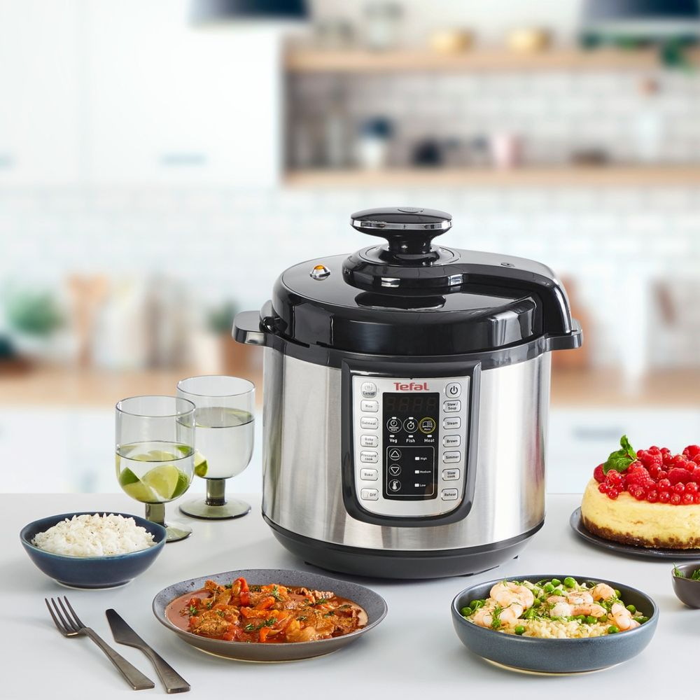 Multicooker electric sub presiune Tefal One Pot CY505EE0, 1200W, 5.8L, 25 Programe, negru/argintiu