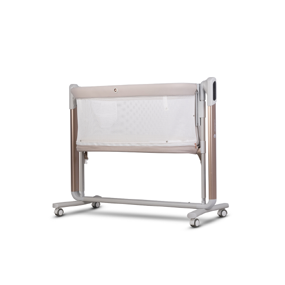 Functie de pat portabil: Cu 4 roti cauciucate si silentioase, COQ poate fi mutat usor intre camere. Fiecare roata are o frana, iar partile laterale din plasa asigura vizibilitate completa asupra copilului.