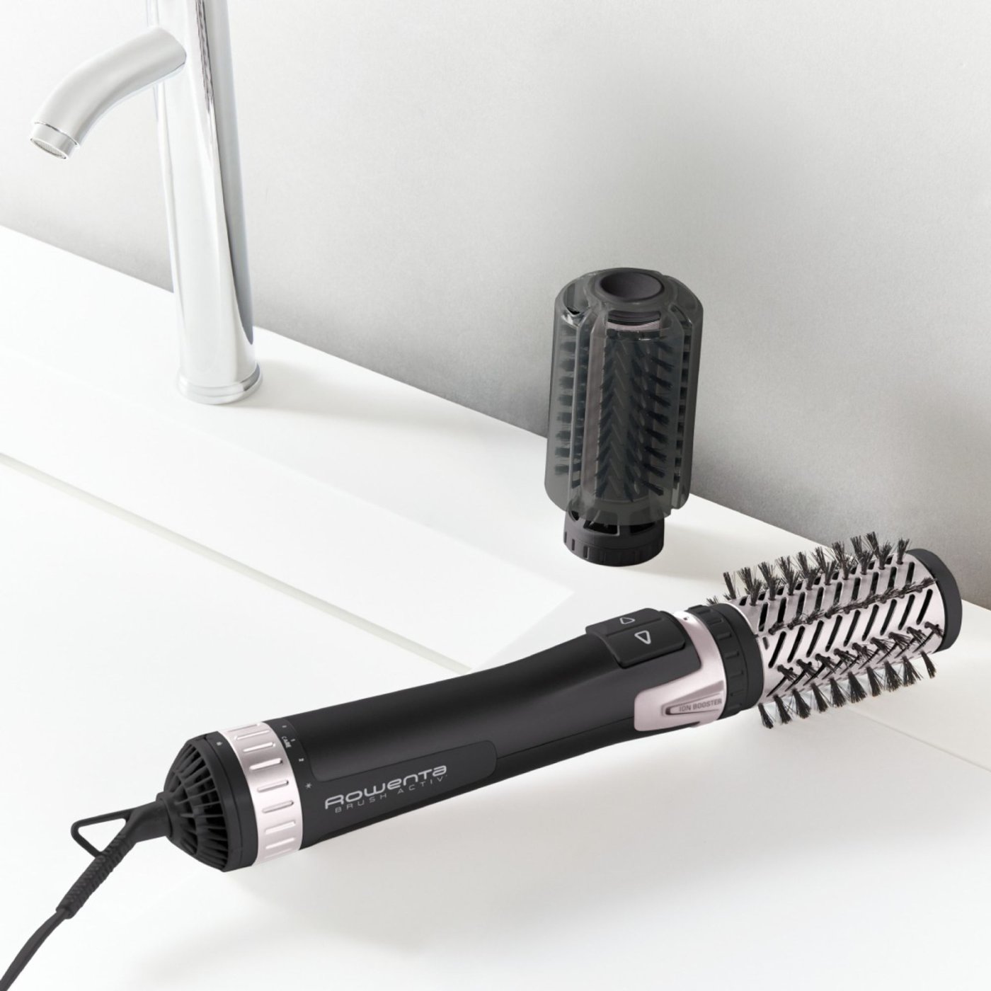 Peria rotativa Rowenta Brush Activ Dry & Style CF9550F0 este instrumentul ideal pentru uscare si coafare completa a parului acasa, combinand putere de 1000 W cu functii avansate pentru rezultate de salon. Echipata cu generator dublu de ioni care reduce electrizarea firelor si ofera un par mai neted si stralucitor, peria dispune de 3 trepte de temperatura si viteza pentru control total in functie de tipul de par si stilul dorit. Duza de aer rece fixeaza coafura si prelungeste durabilitatea look‑ului, iar peria rotativa care se roteste in ambele directii permite uscare si stilizare simultana. Designul practic include si inel de agatare pentru depozitare simpla.